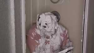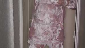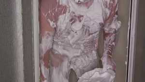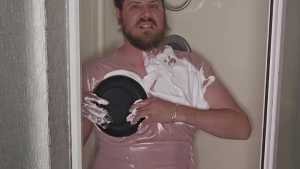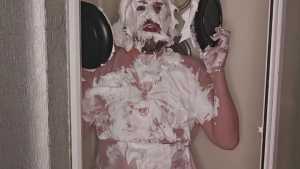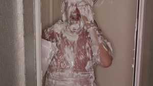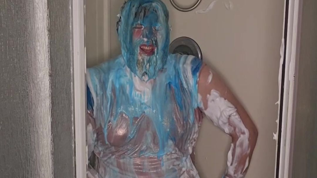After multiple spins in the Spin for Pie Redux Game I ended up with around 10 pies, some slime and a bucket of pie slop. Found a gorgeous night club dress to use and paid off the losses. Finished jerking off and cumming in the mess!